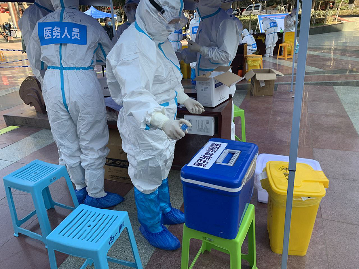 为有效应对当前新冠肺炎疫情,切实提高我院面对疫情风险时的应急能力、分工协作与配合能力,提升大规模人群核酸检测能力,1月22日下午,在石棉县卫生健康局的统一组织协调下,我院业务副院长史秀珍带领医务科、护理部、院感科、设备科、核酸采集、标本运送人员9人参加了石棉县全员核酸检测应急演练。