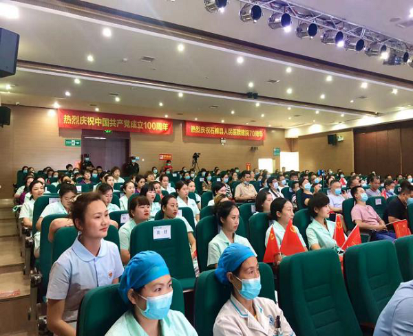 6月25日,石棉县人民医院在医院综合楼六楼多功能厅召开了“庆祝中国共产党成立100周年暨建院70 周年庆祝大会。县委常委、宣传部长宋晓明、县人大常委会二级调研员叶秀斌、县政协副主席李余安、县委组织部部务委员邢艳、县政府副县长张彦伟、县卫生健康局党委书记赵志红等领导出席了会议,县公立医院集团党委成员、片区分院院长及我院各支部党员、入党积极分子、科干会成员、科室员工代表、退休职工代表共计180余人参加了此次会议。