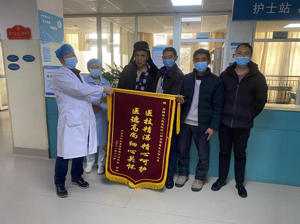 近日,我院神经/烧伤/整形/头颈外科收到了来自患者家属送来的惊喜“礼物”。科室患者柳华及家属将两面鲜红的锦旗送到神经/烧伤/整形/头颈外科副主任医师胡冬雪及科室全体护士们的手中,对医生的精心治疗及护士们的贴心护理工作表示高度的赞扬和诚挚的感谢。
