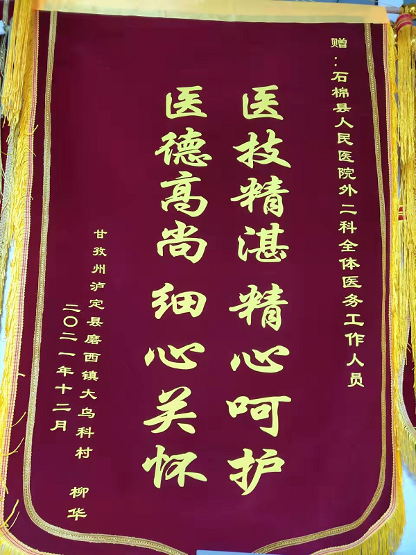 锦旗不仅仅是患者及家属对科室全体人员的赞许,更是对整个医院工作的赞许。今后我们将更加尽心做好工作,全心全意为患者服务。